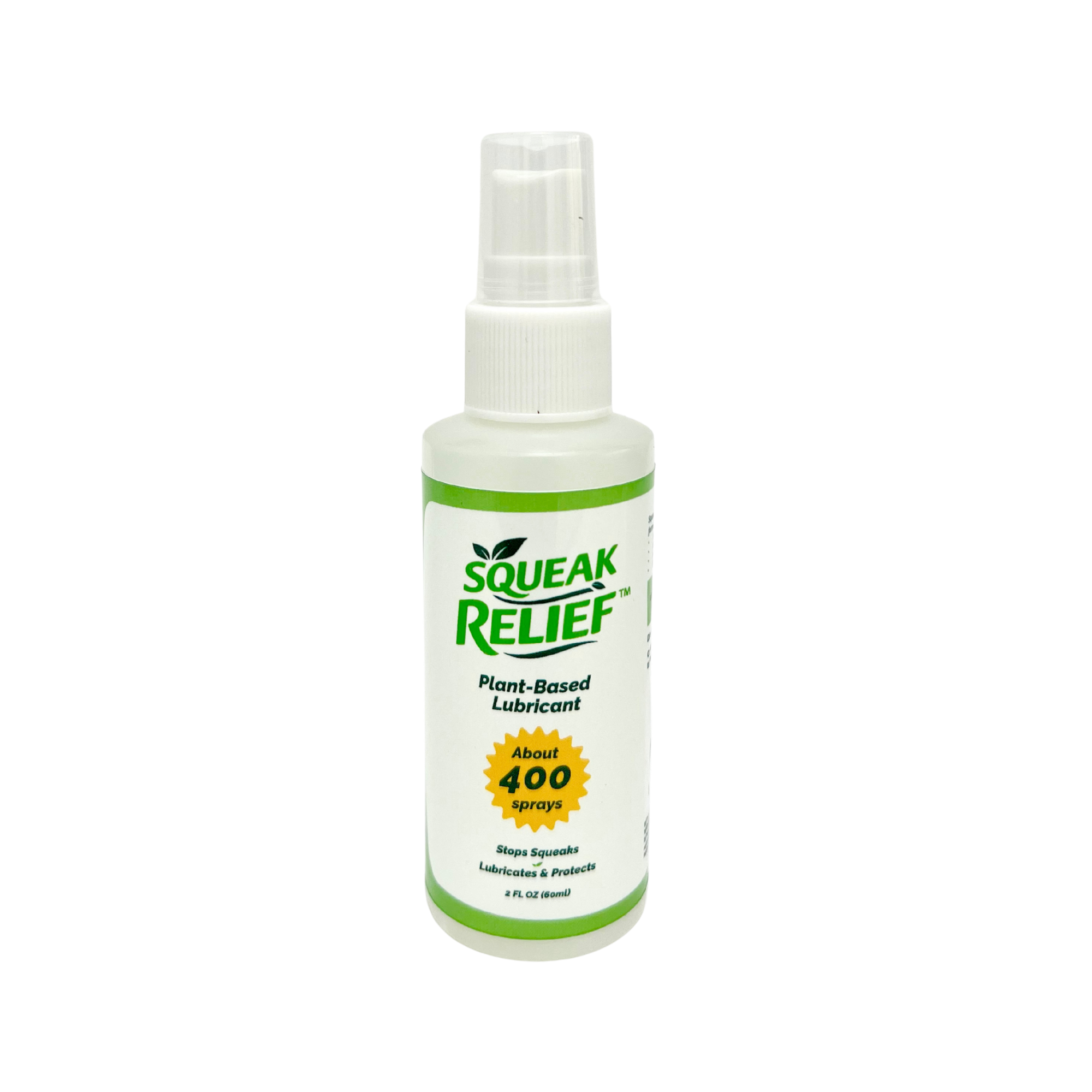 Squeak Relief is a premium plant-based, eco-friendly lubricant formulated to stop squeaks and reduce friction.